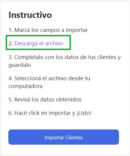 Este archivo se descargará en tu computadora y deberás completarlo con la información de tus nuevos clientes.