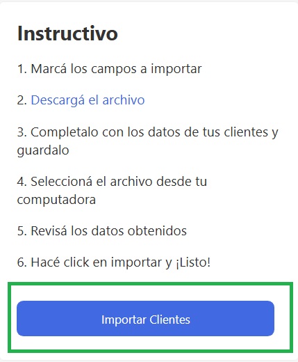Si los datos son correctos, presioná el botón Importar Clientes (a la derecha). De esta manera, el sistema incorporará todos los nuevos clientes a tu base de datos de forma automática.