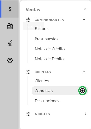 Seleccioná el botón "+" en la sección Cobranzas para generar una nueva.