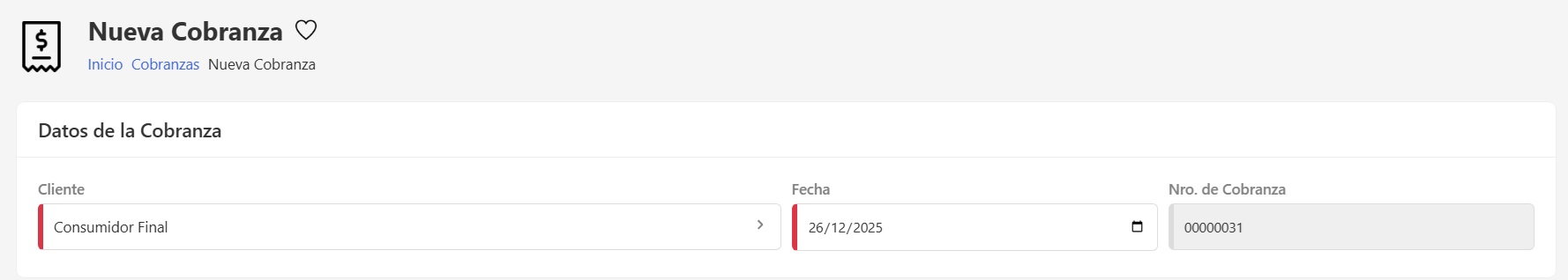Número de Cobranza: lo genera automáticamente el sistema.