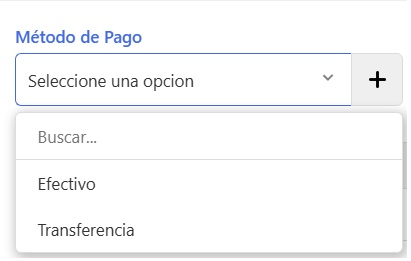 En esta sección agrega los métodos de pago correspondientes