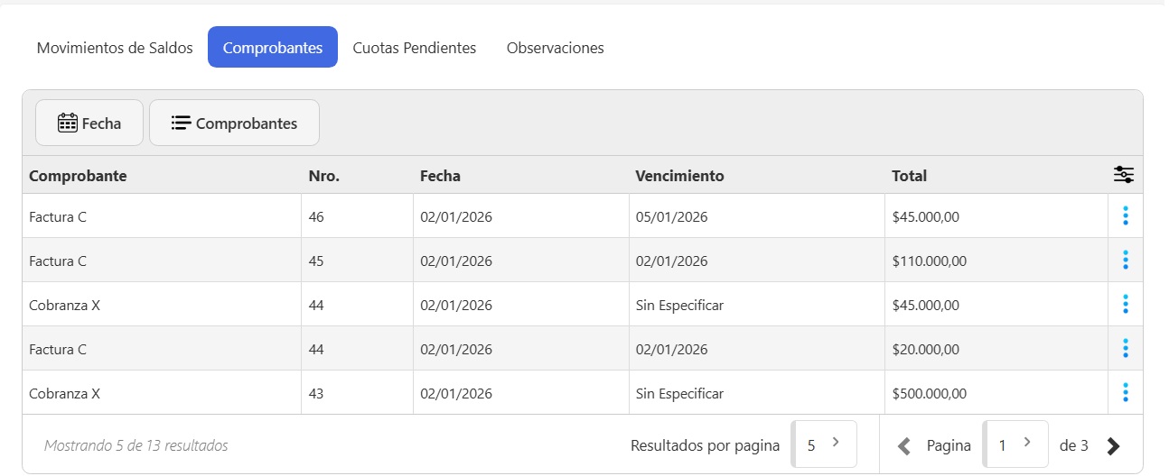 Esta pantalla te permite tener un control completo de la cuenta de tu cliente, sus movimientos y el estado de deuda.
