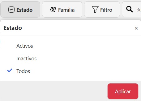 - Estado: Activo, Inactivo o Todos.