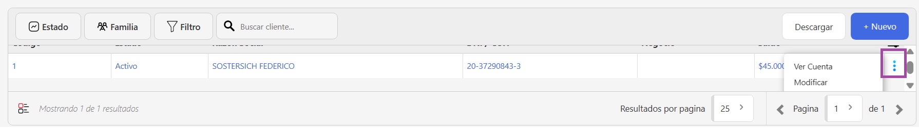 También podés acceder a la cuenta haciendo clic directamente sobre el nombre del cliente.