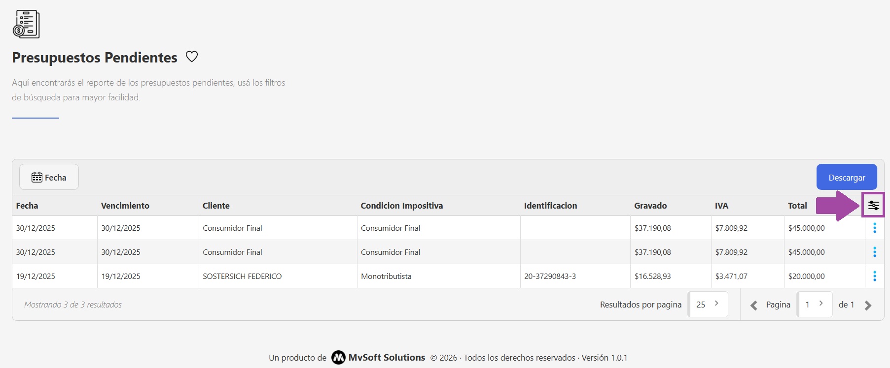 - Visualizá la información: Al ingresar al reporte, vas a ver un listado completo con todos los presupuestos en estado pendiente con toda la información necesaria