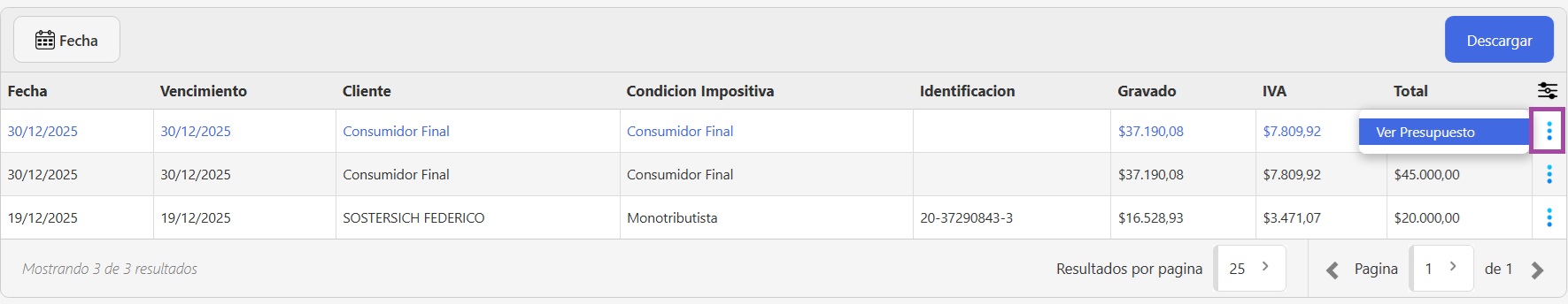 - Podés filtrar los resultados por rango de fechas, para analizar presupuestos dentro de un período determinado.