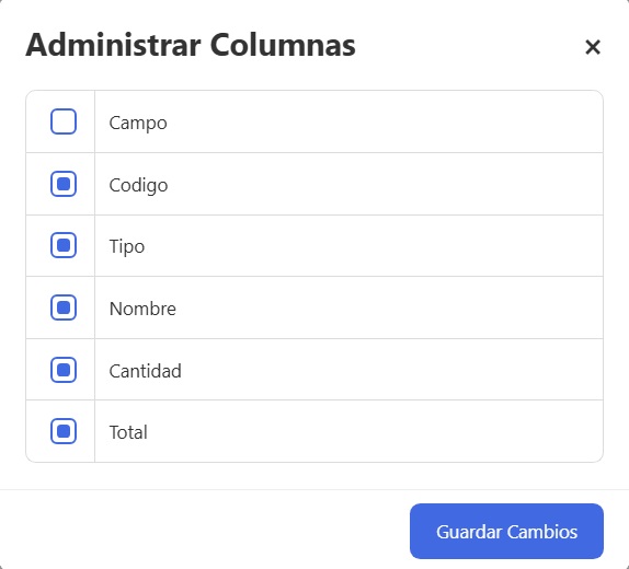 Haciendo clic en Ajustes activa o desactiva las distintas columnas a mostrar
