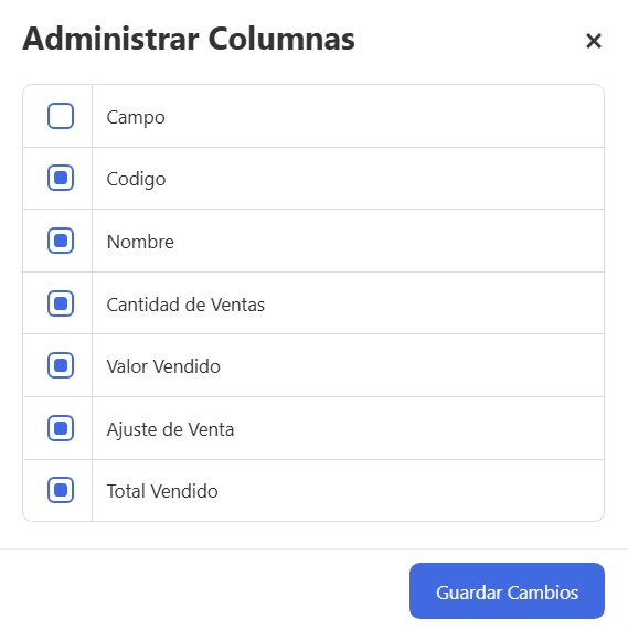 Haciendo clic en Ajustes activa o desactiva las distintas columnas a mostrar