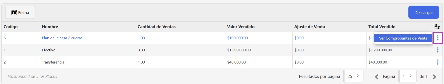 - Ver Comprobantes de Venta: Accedé al detalle de todas las ventas que se cobraron usando ese medio.