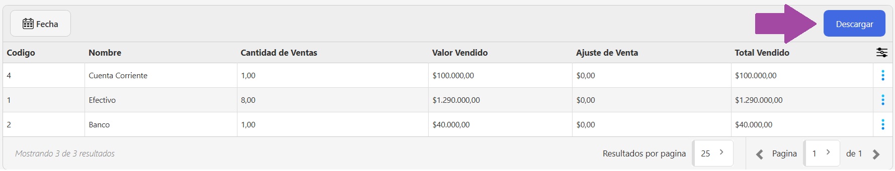 - Valor Vendido: Total bruto vendido utilizando ese método