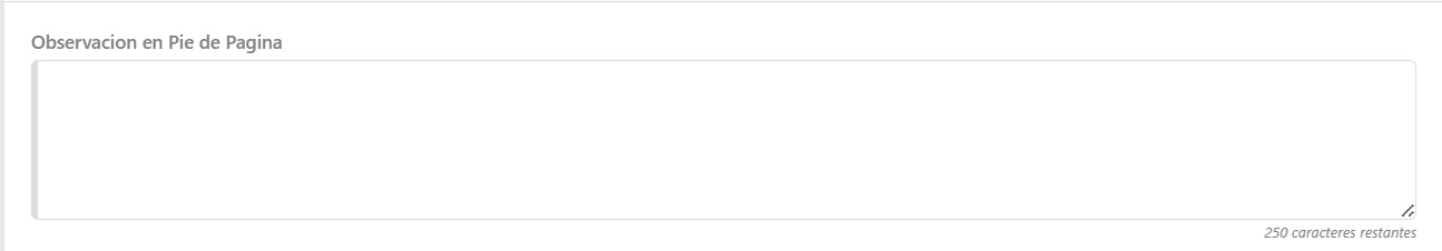 Observación en Pie de Página: te permite agregar un texto en el pie de página de la factura/recibo.