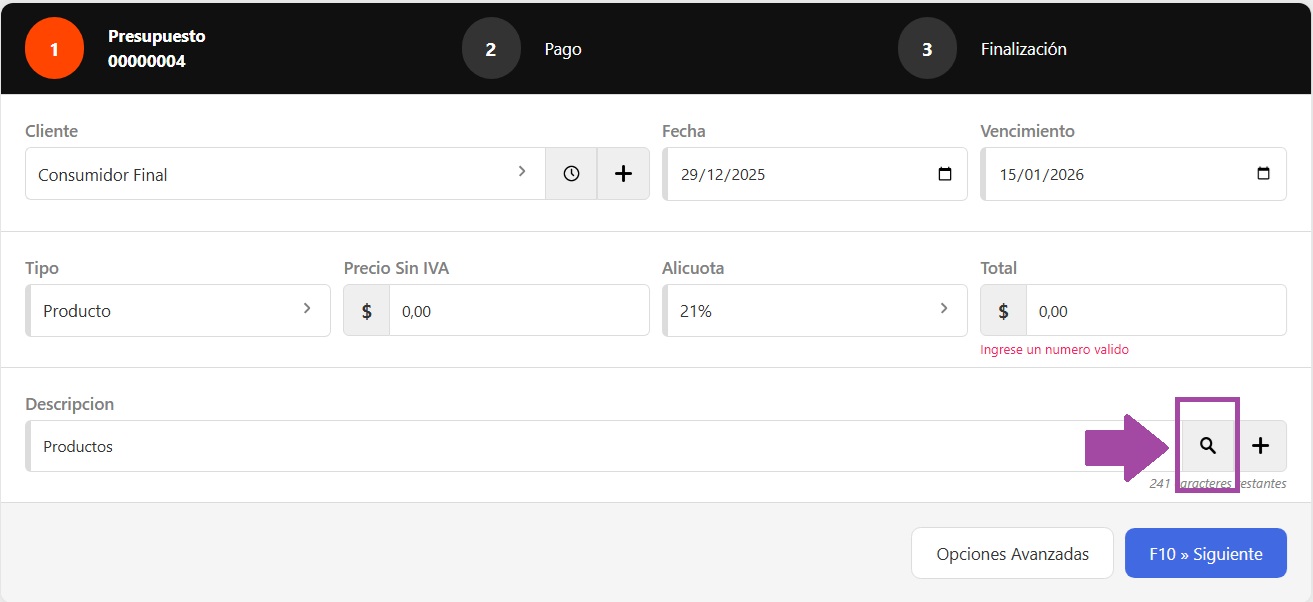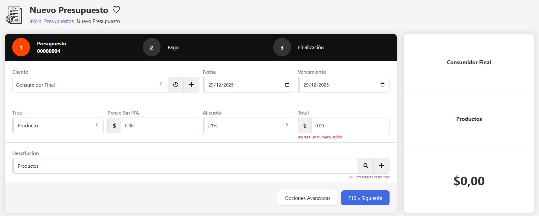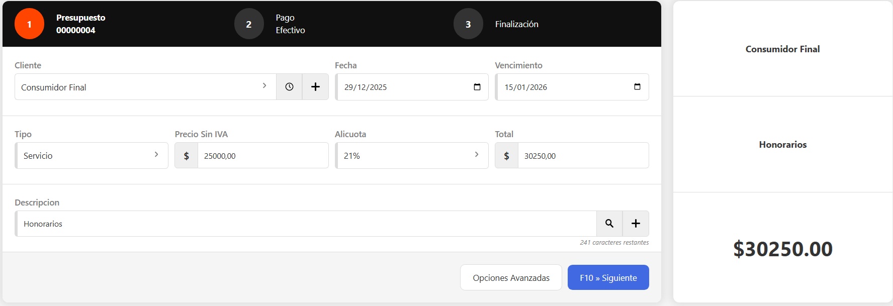 Para hacer un presupuesto el procedimiento es similar al de generar una factura, seguí los siguientes pasos: