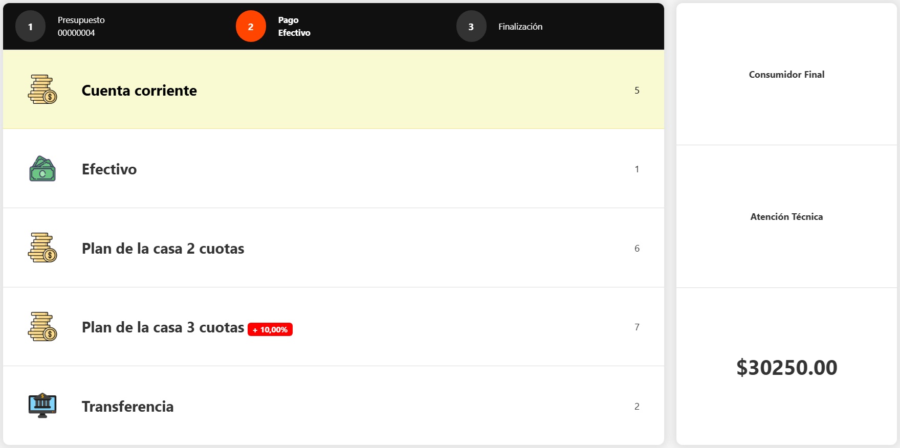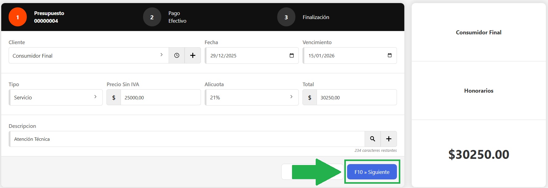 Una vez tengas todos los datos cargados presioná F10 o dale al botón Siguiente para avanzar a la pantalla de Pago