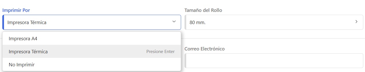 - Impresora térmica: seleccionando esta forma de impresión elegí si es 80mm o 58mm