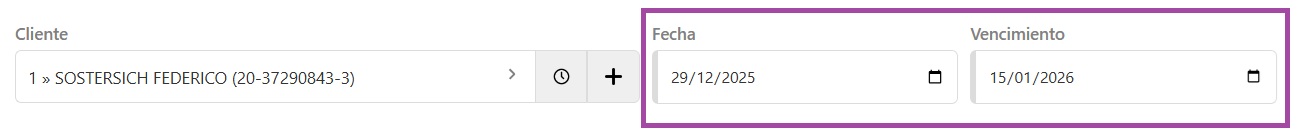 Fecha de vencimiento establece la fecha de vencimiento del comprobante