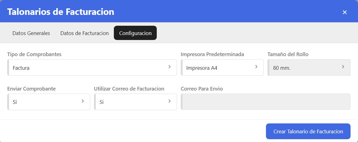 - Impresora predeterminada: Elegí si el talonario usará una impresora A4 o una impresora térmica.