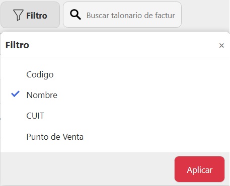 - Filtro: Código, Nombre, CUIT o Punto de Venta (una vez seleccionado el filtro completa la información en el cuadro de búsqueda)